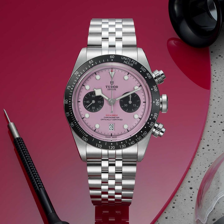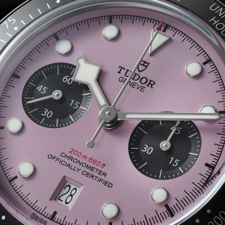Dare to stand out with the exquisite Black Bay Chrono Limited Edition Pink Dial 41mm Men's Watch M79360N-0019! This watch is not just a timepiece; it's a statement of elegance and individuality. Perfectly blending classic design with modern flair, this watch is a must-have for the discerning gentleman.