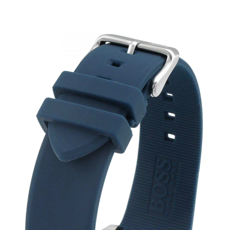 ساعة هوغو بوس للرجال اصلية موديل (فيلوسيتي) Velocity 1513717 بلون اسود واستيك رابر لون ازرق