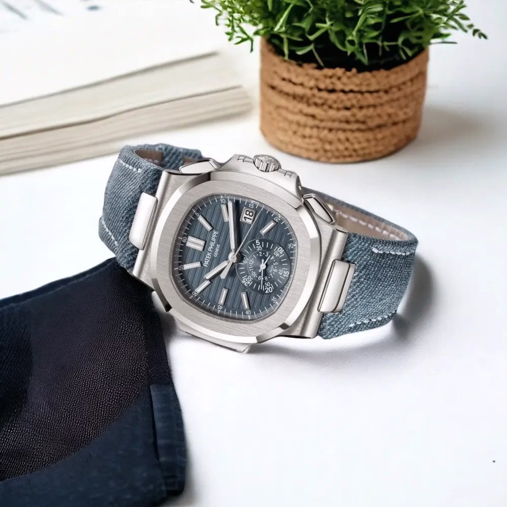 تتميز هذه الساعة بتصميمها الرائع ولونها الأزرق الجذاب، مما يجعلها الخيار المثالي لكل رجل يبحث عن التميز والأناقة. مصنوعة من مواد عالية الجودة، تجمع بين الجلد والنسيج مع لمسة عصرية، إنها ليست مجرد ساعة، بل هي تعبير عن أسلوب حياة.