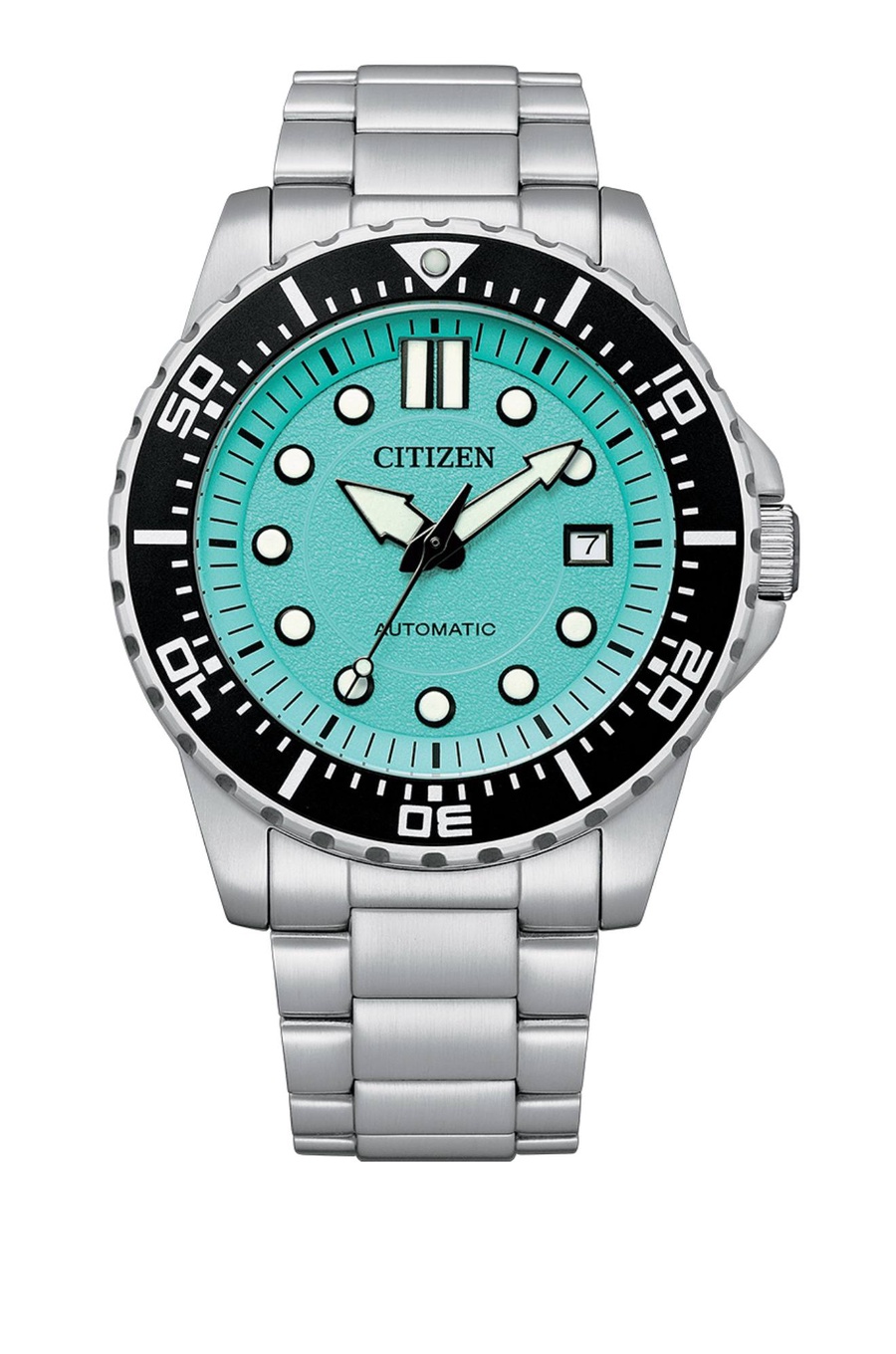 ساعة سيتيزن أوتوماتيكية رجالية NJ0170-83X هي ساعة ميكانيكية أنيقة ورياضية تتميز بميناء بلون أزرق مائي فريد (سيان